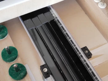 Diese verhindert das berühren der Hämmer an den Saiten und wird durch einen Bodenzug unterhalb des Spieltisches montiert.