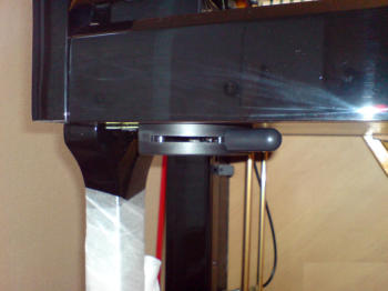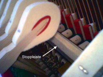 Diese verhindert das berühren der Hämmer an den Saiten und wird durch einen Bodenzug unterhalb des Spieltisches montiert.